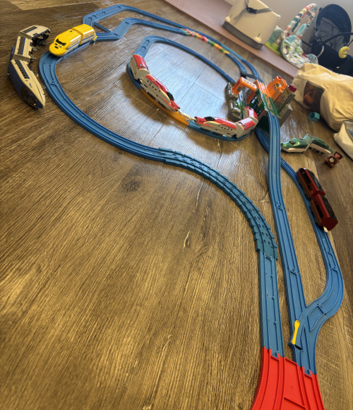 そのあともお気に入りの新幹線たちを何度も何度も走らせて遊んでいます♪