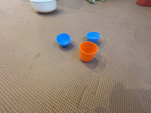 ままごと遊びをすると、塩コショウの容器が手から落ちてコマのようにコロコロ転がったのが